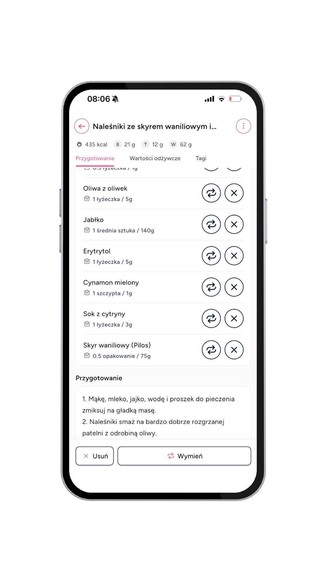 Posiłek nie przypadł Ci do gustu? Żaden problem! Czeka na Ciebie kilka tysięcy zdrowych przepisów, na które możesz łatwo wymienić posiłek z planu.